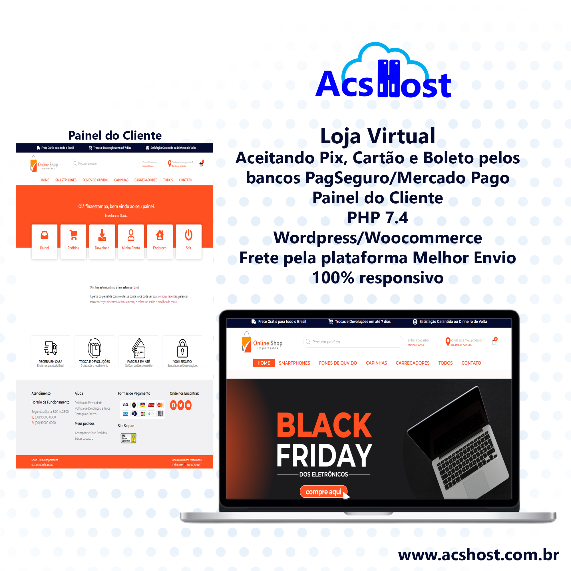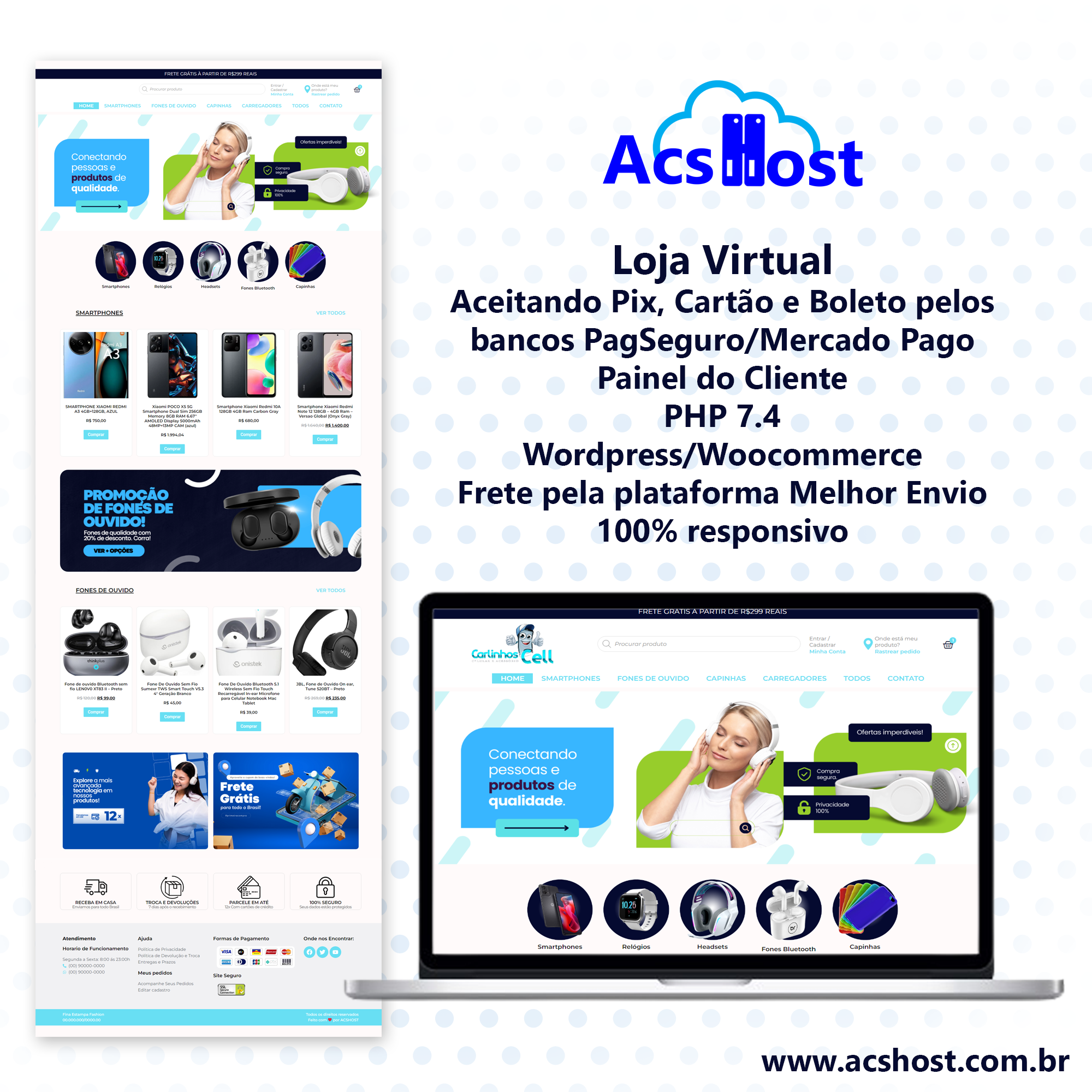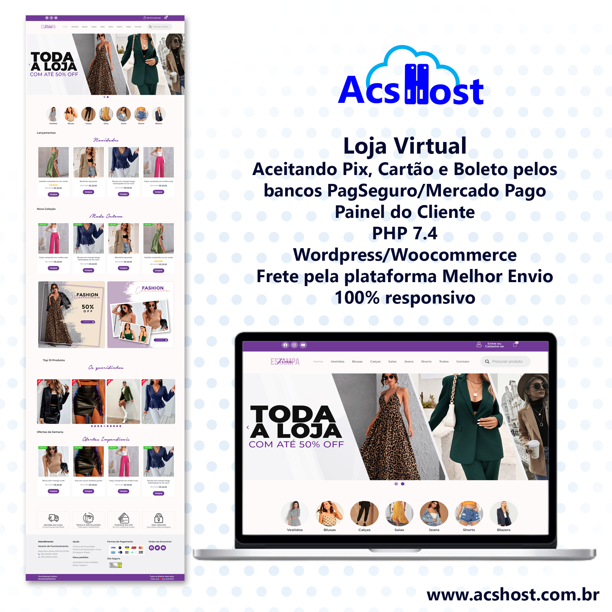 Criada no WordPress com Elementor Pro, ela oferece meios de pagamento com a baixa automática pelo PIX, pagamento via cartão de credito e boleto bancários são opções na hora da venda para seus clientes.